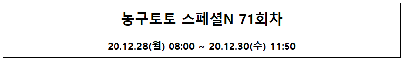 [농구토토] 스페셜N 더블/트리플 70회차 분석 및 무료 예측 결과 공개 (2020.12.29 09:50 마감) (0) | 2020.12.28 |