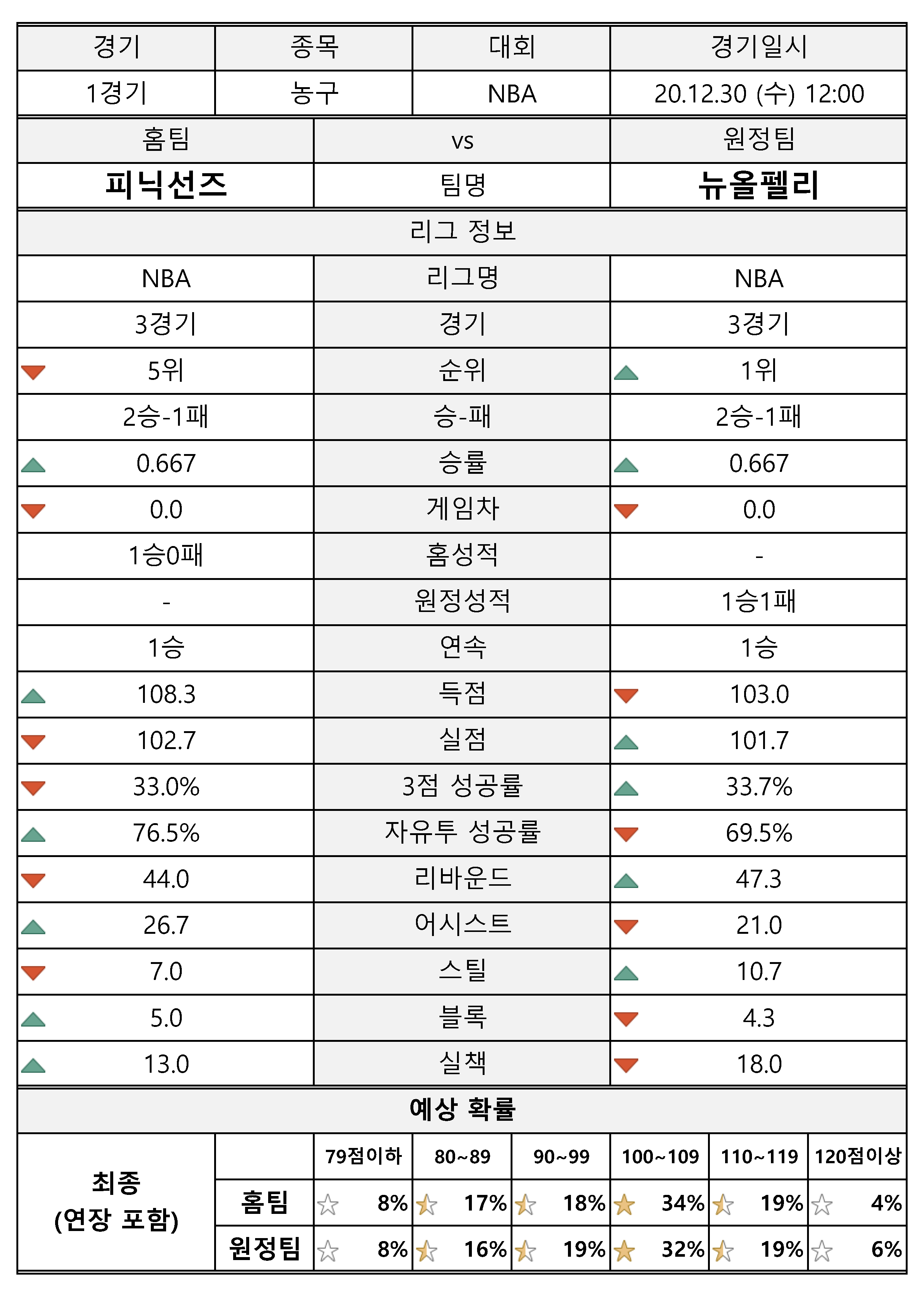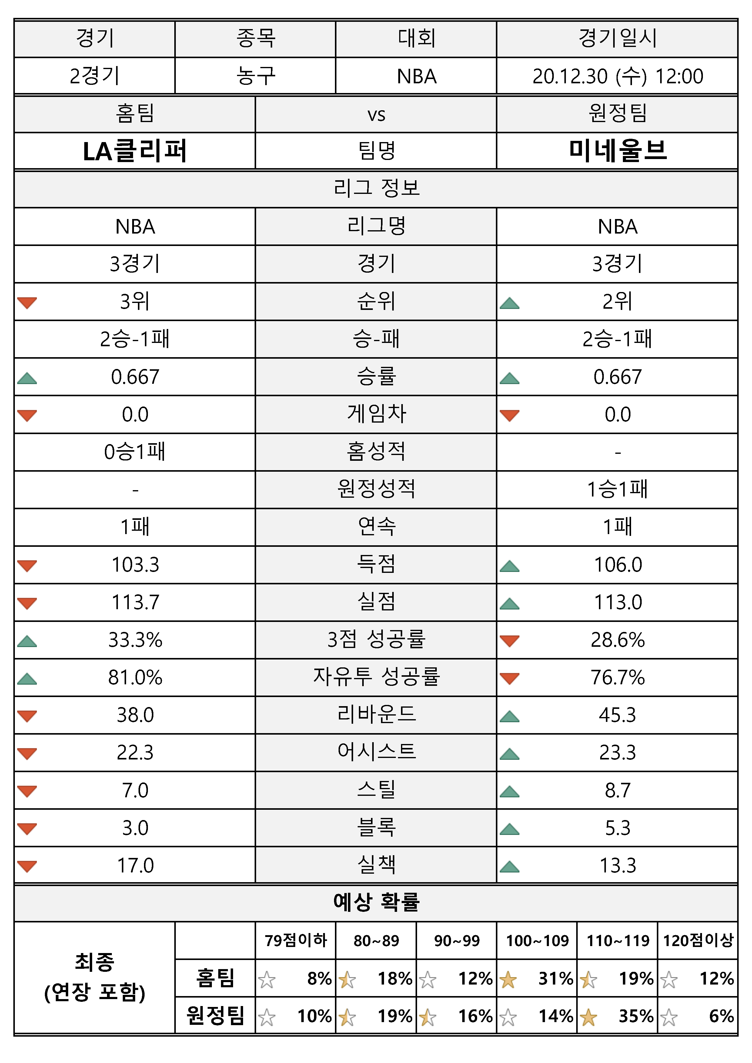 해당 팀에 대한 현재 성적을 확인해 보시고, 예측 결과도 참고하시기 바랍니다.