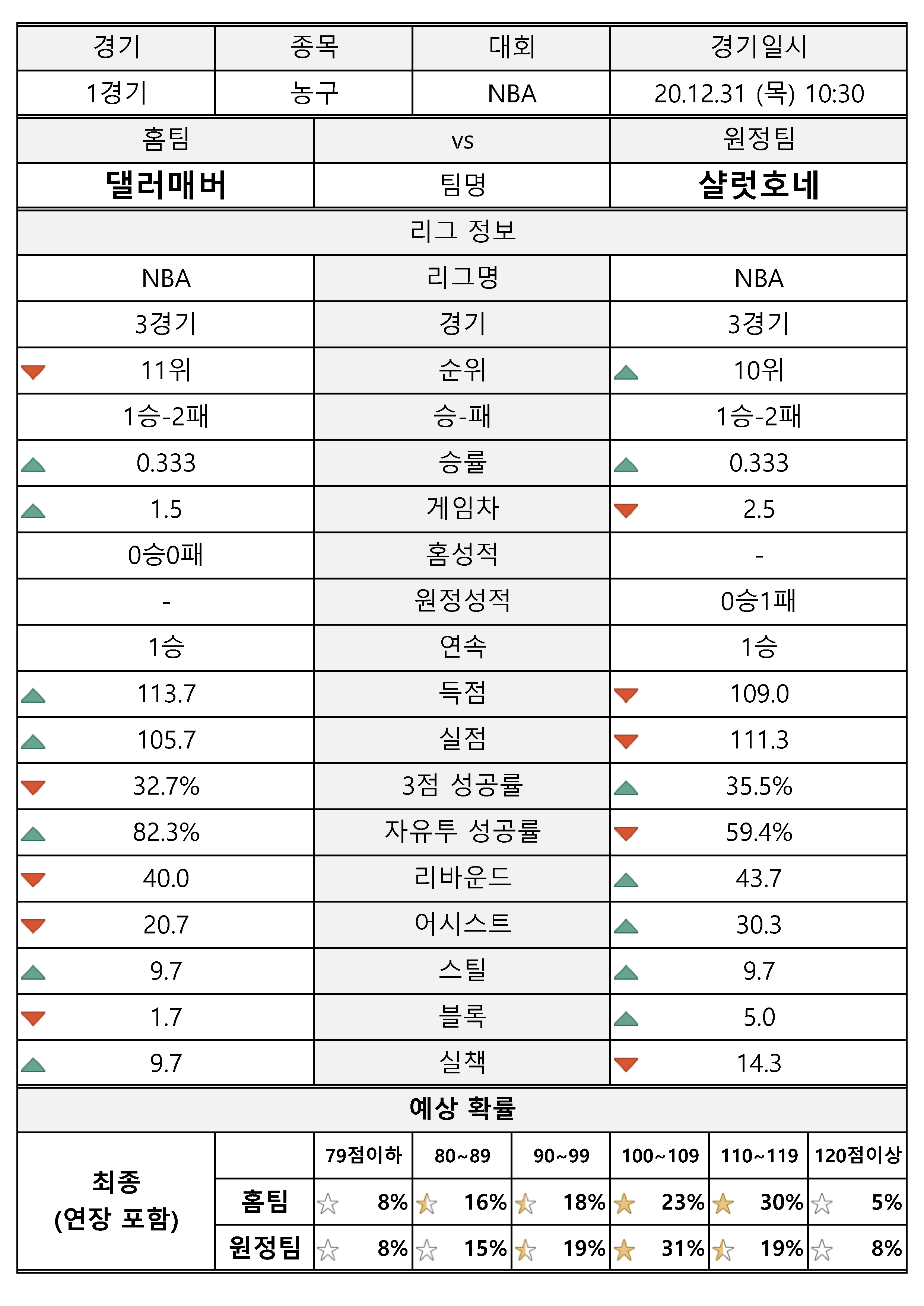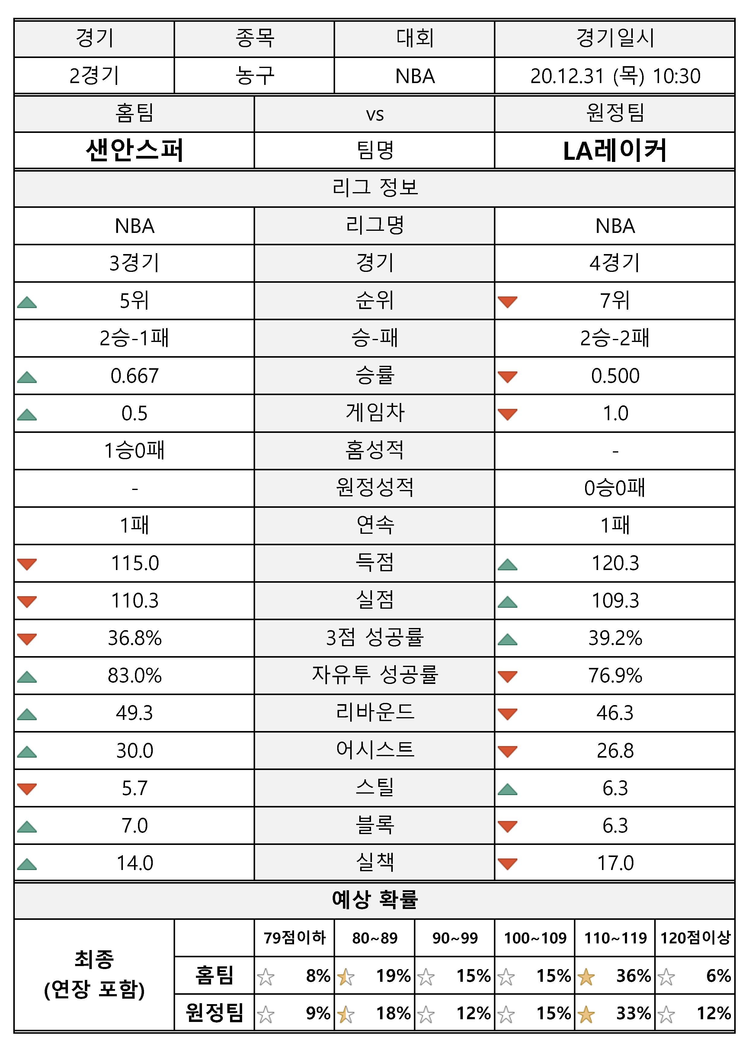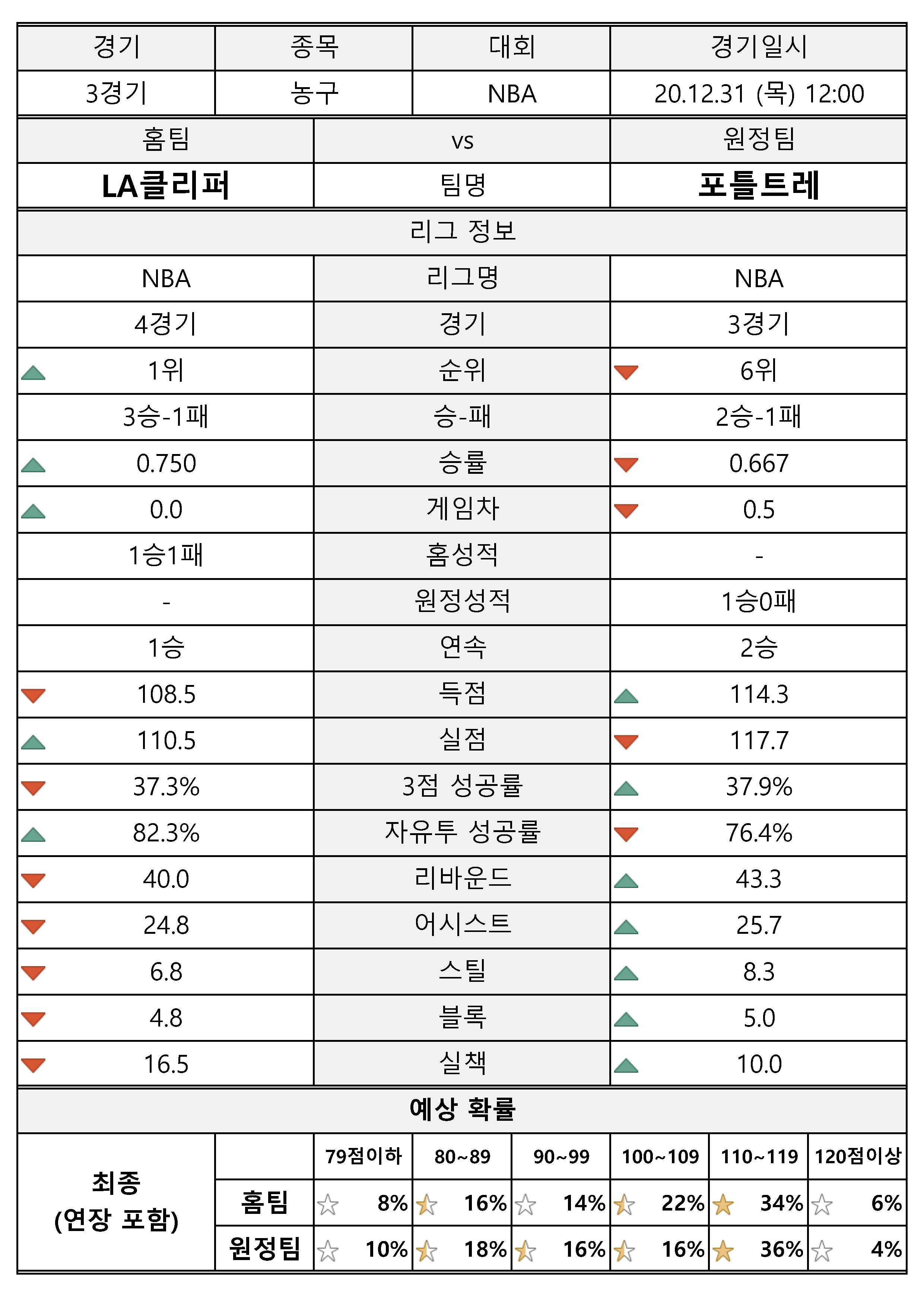 해당 팀에 대한 현재 성적을 확인해 보시고, 예측 결과도 참고하시기 바랍니다.