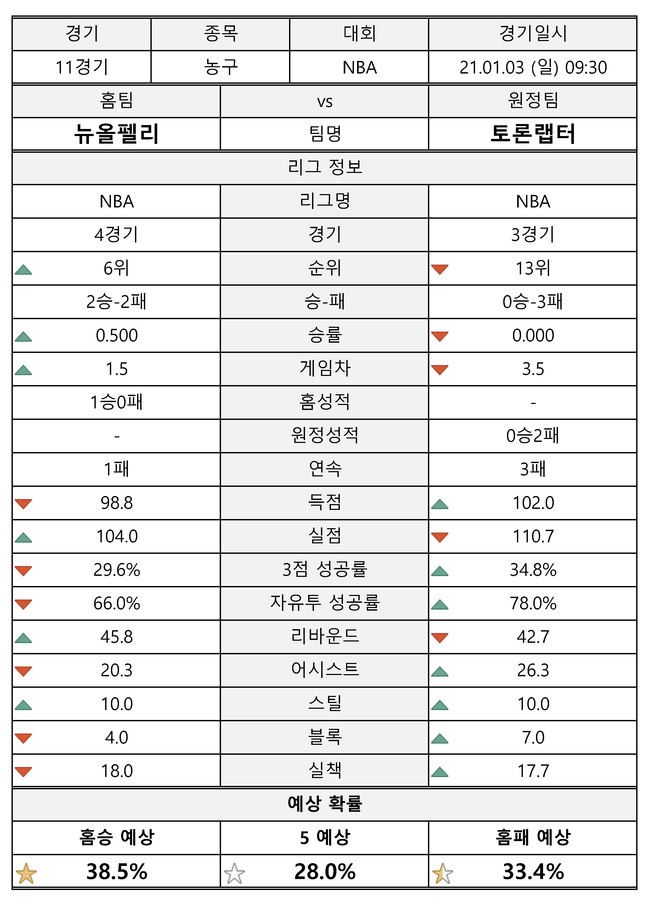 | [농구토토] 스페셜N 더블/트리플 1회차 분석 및 무료 예측 결과 공개 (2021.01.01 09:20 마감) (0) | 2020.12.31 |
