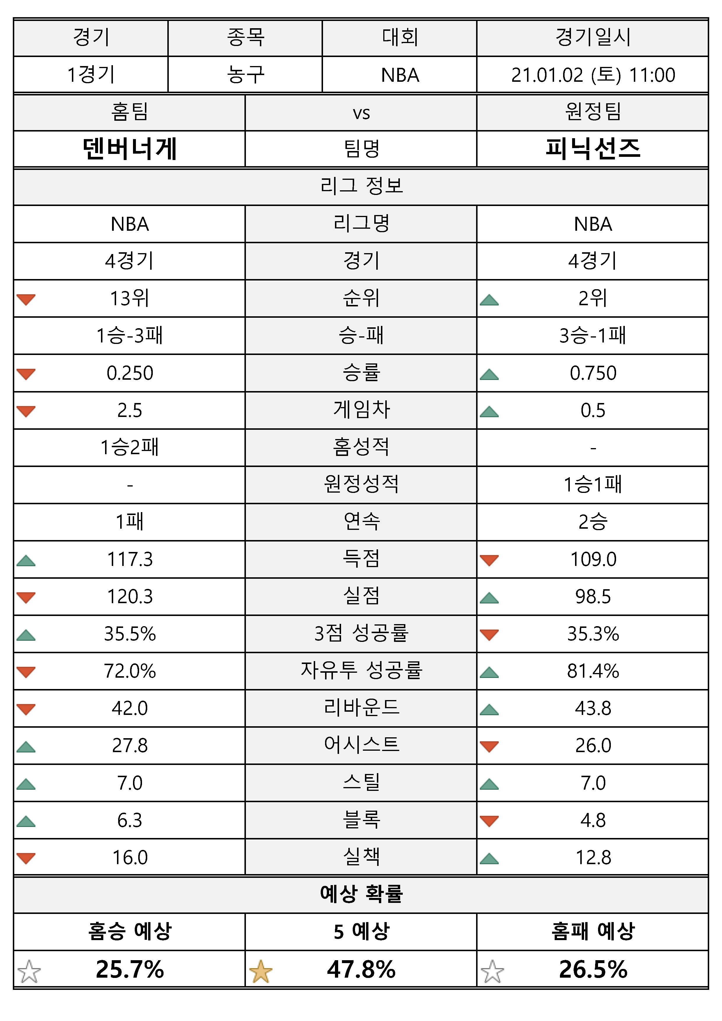 해당 팀에 대한 현재 성적을 확인해 보시고, 예측 결과도 참고하시기 바랍니다.