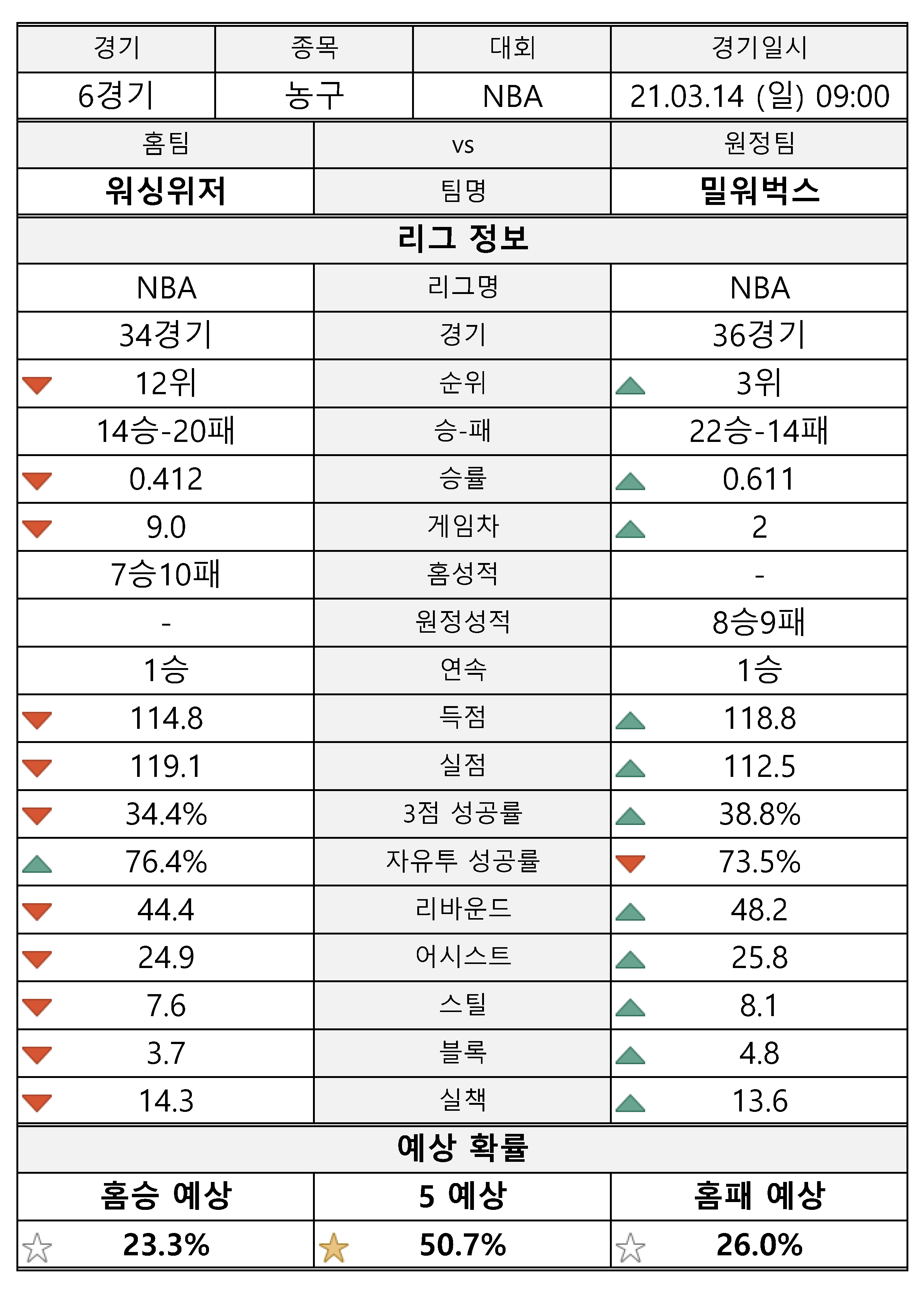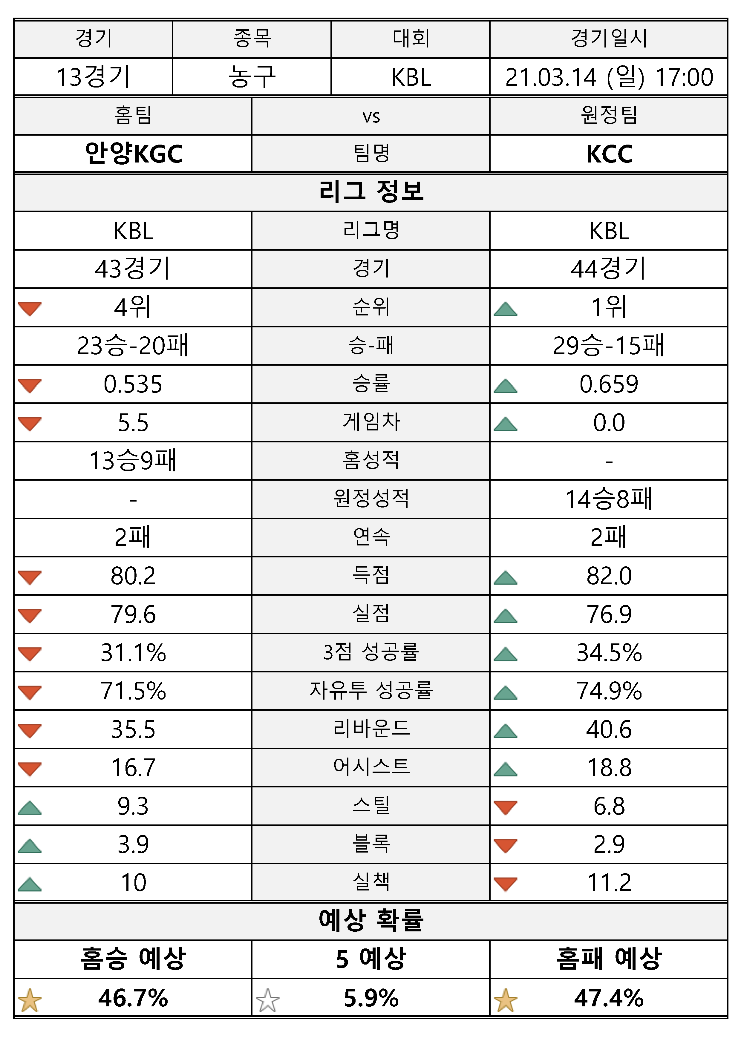 해당 팀에 대한 현재 성적을 확인해 보시고, 예측 결과도 참고하시기 바랍니다.