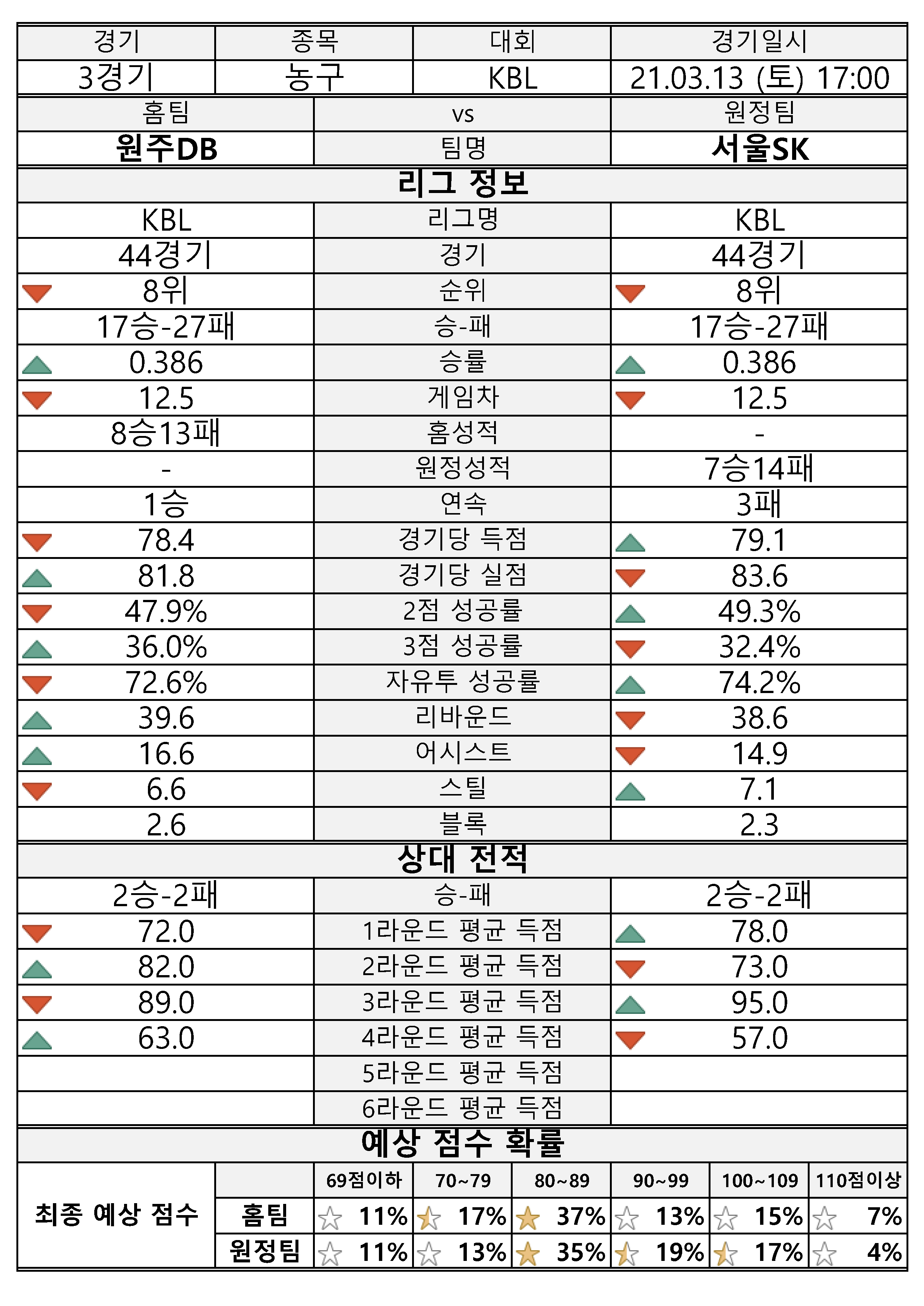 [농구토토] W매치 42회차 분석 및 무료 예측 결과 공개 (2021.03.13 17:50 마감) (0) | 2021.03.13 |