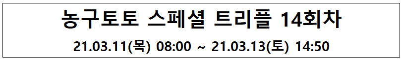 [농구토토] 스페셜N 더블/트리플 50회차 분석 및 무료 예측 결과 공개 (2021.03.14 09:50 마감) (0) | 2021.03.13 |