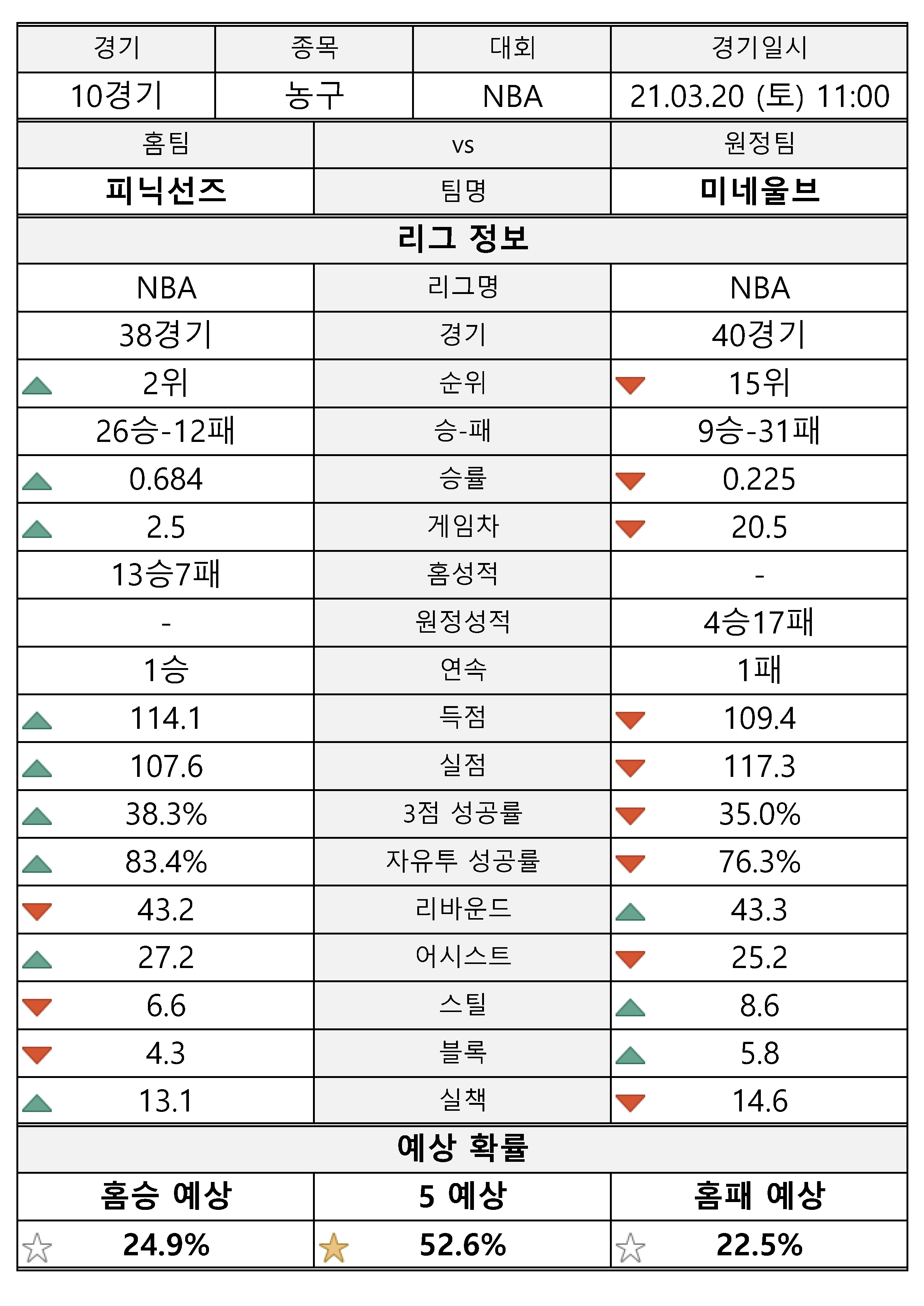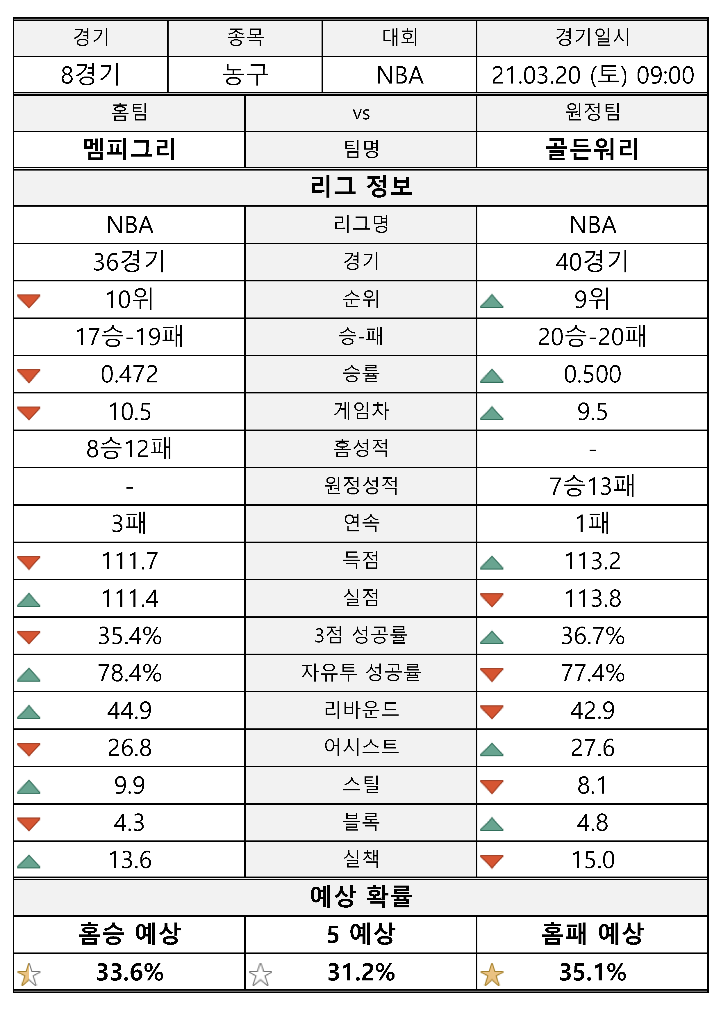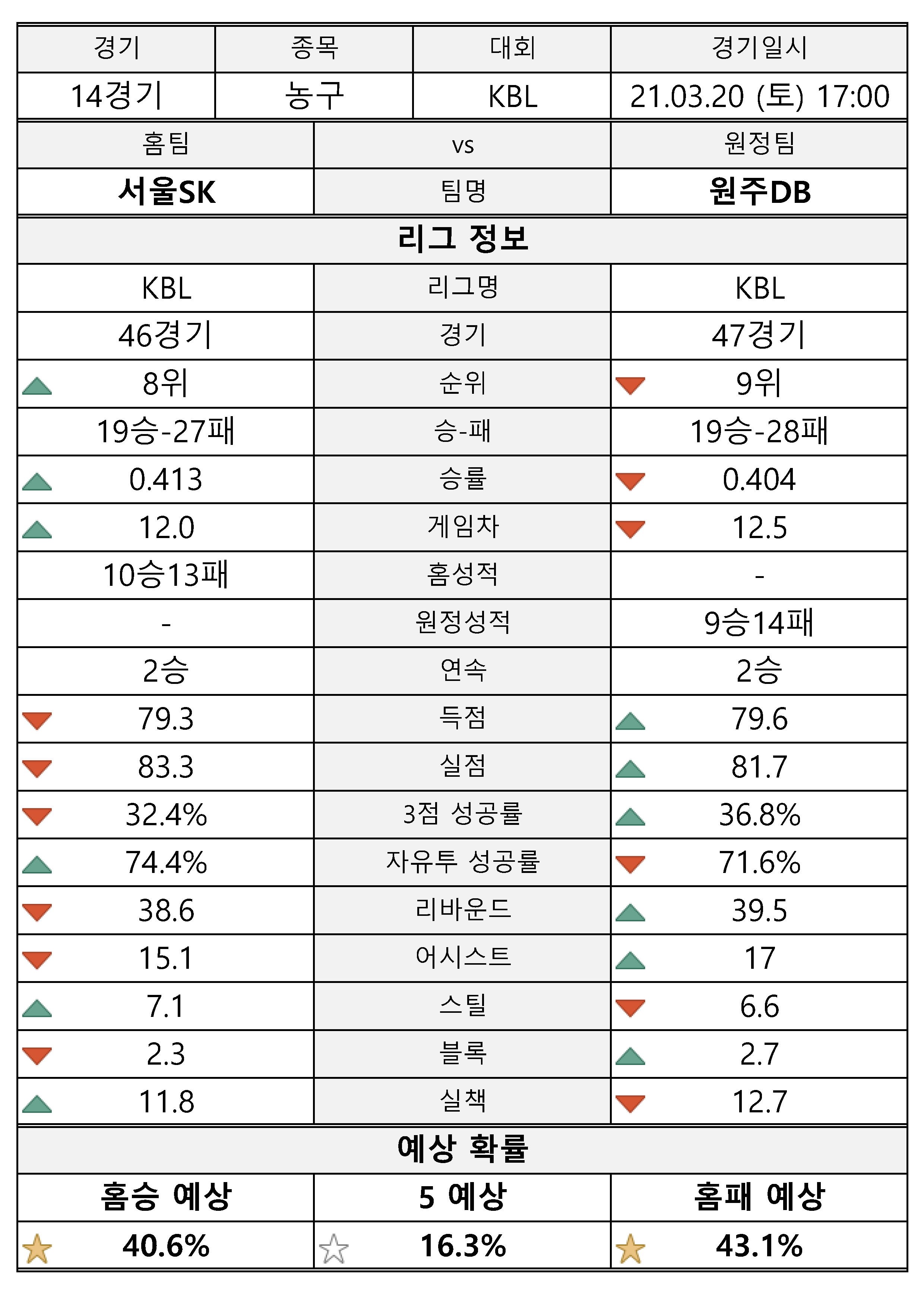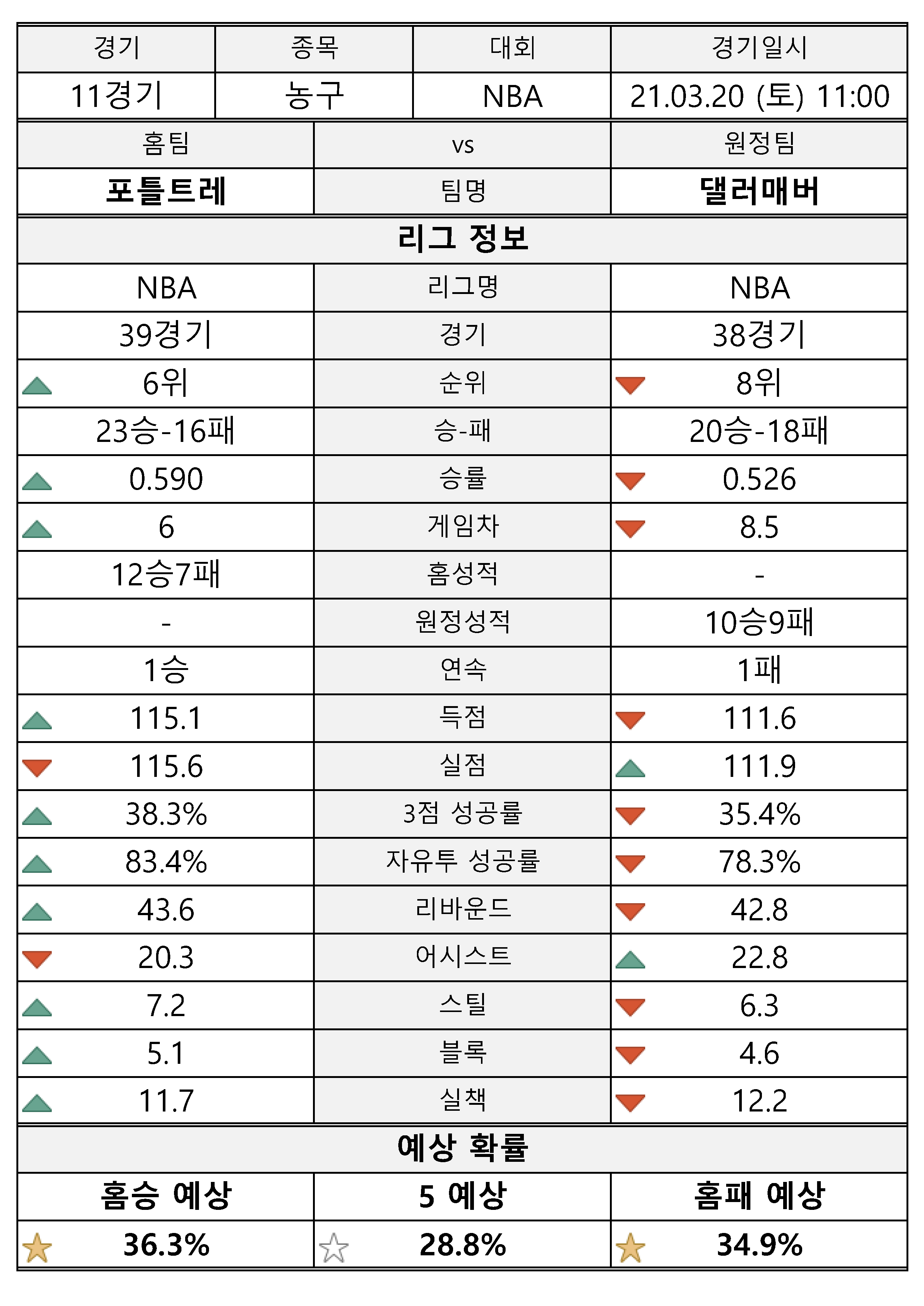 해당 팀에 대한 현재 성적을 확인해 보시고, 예측 결과도 참고하시기 바랍니다.