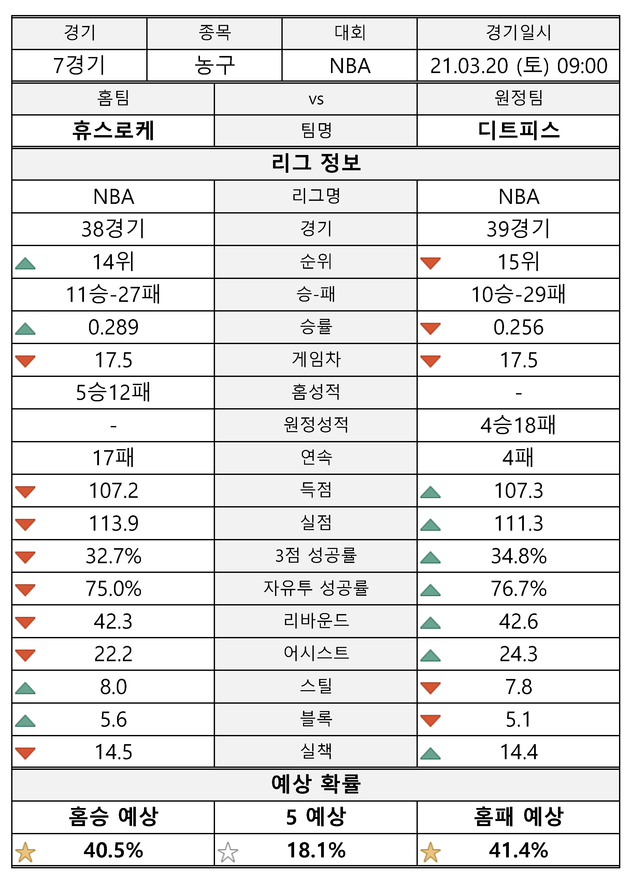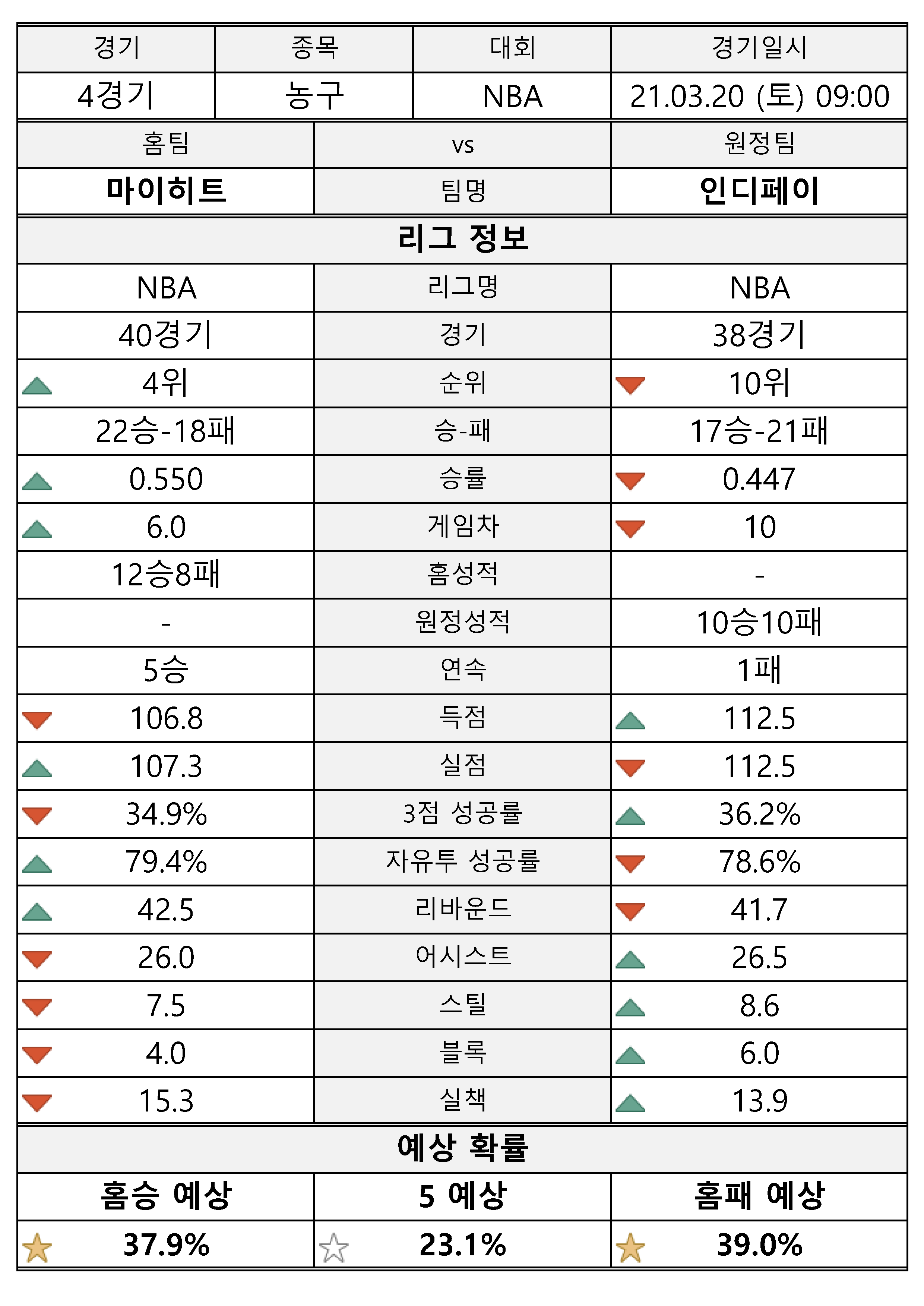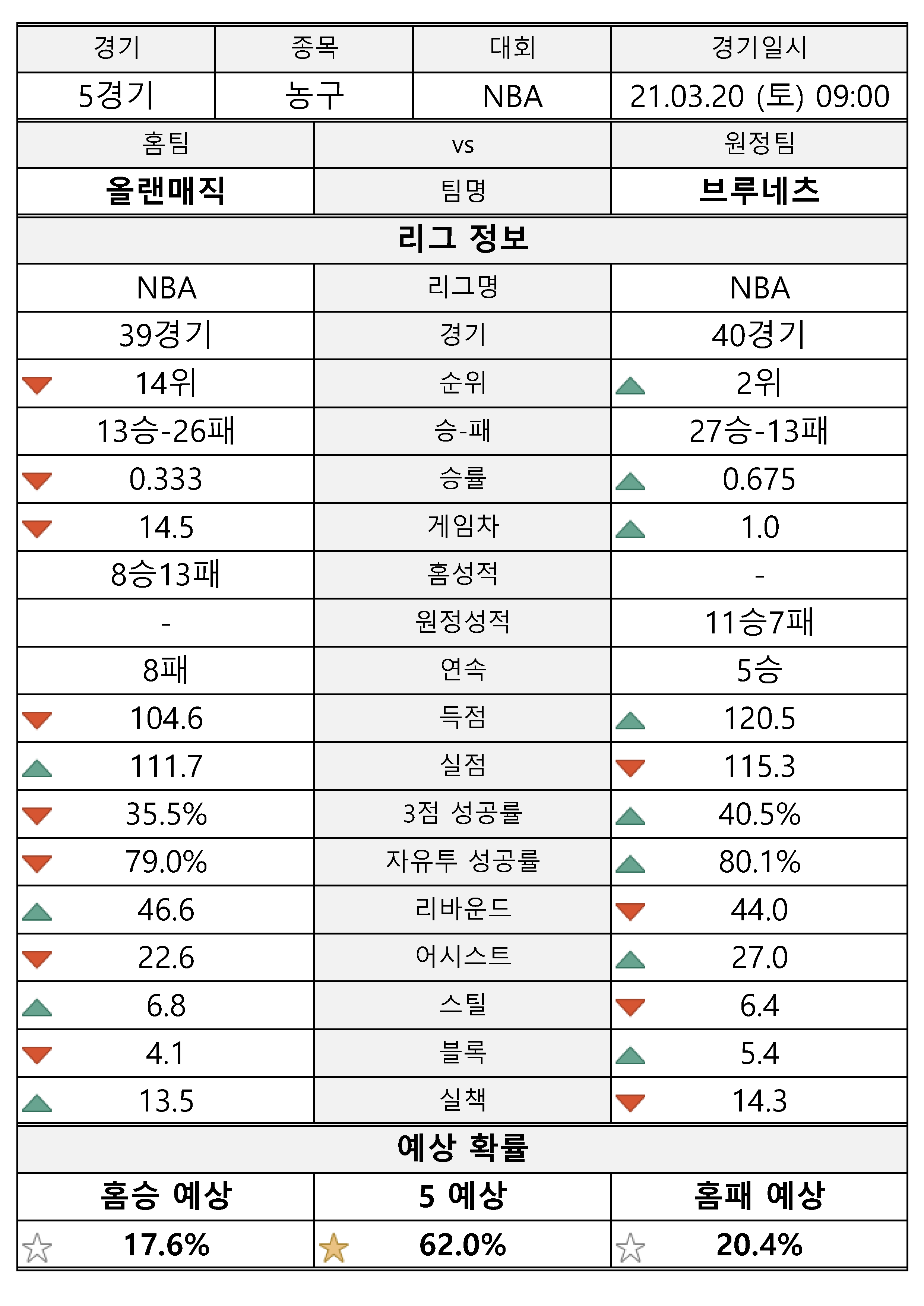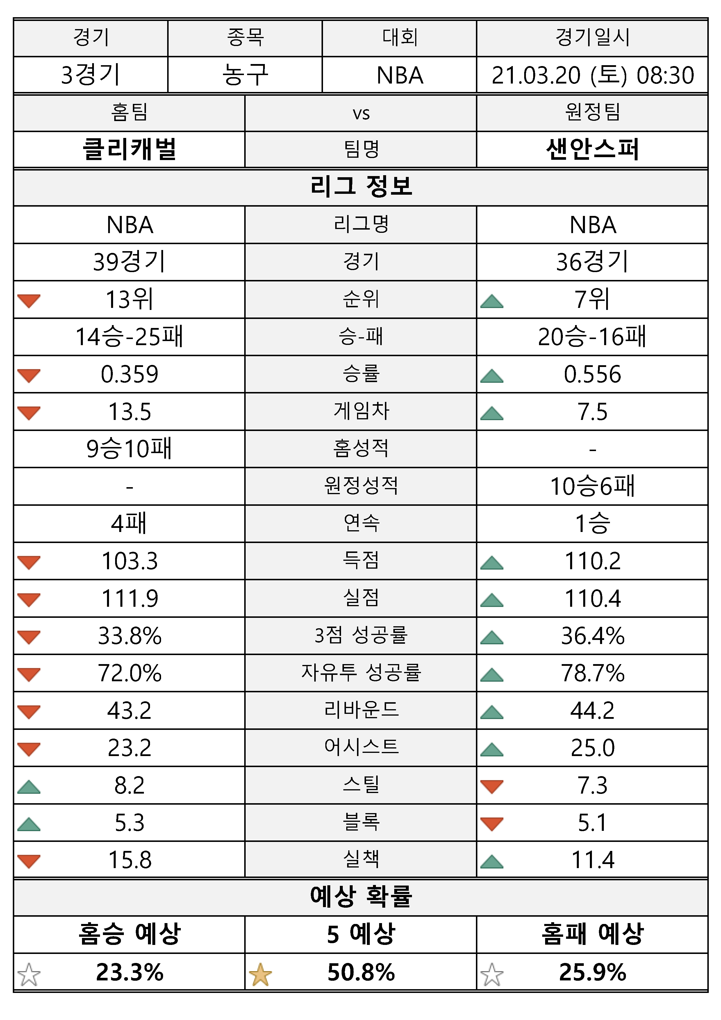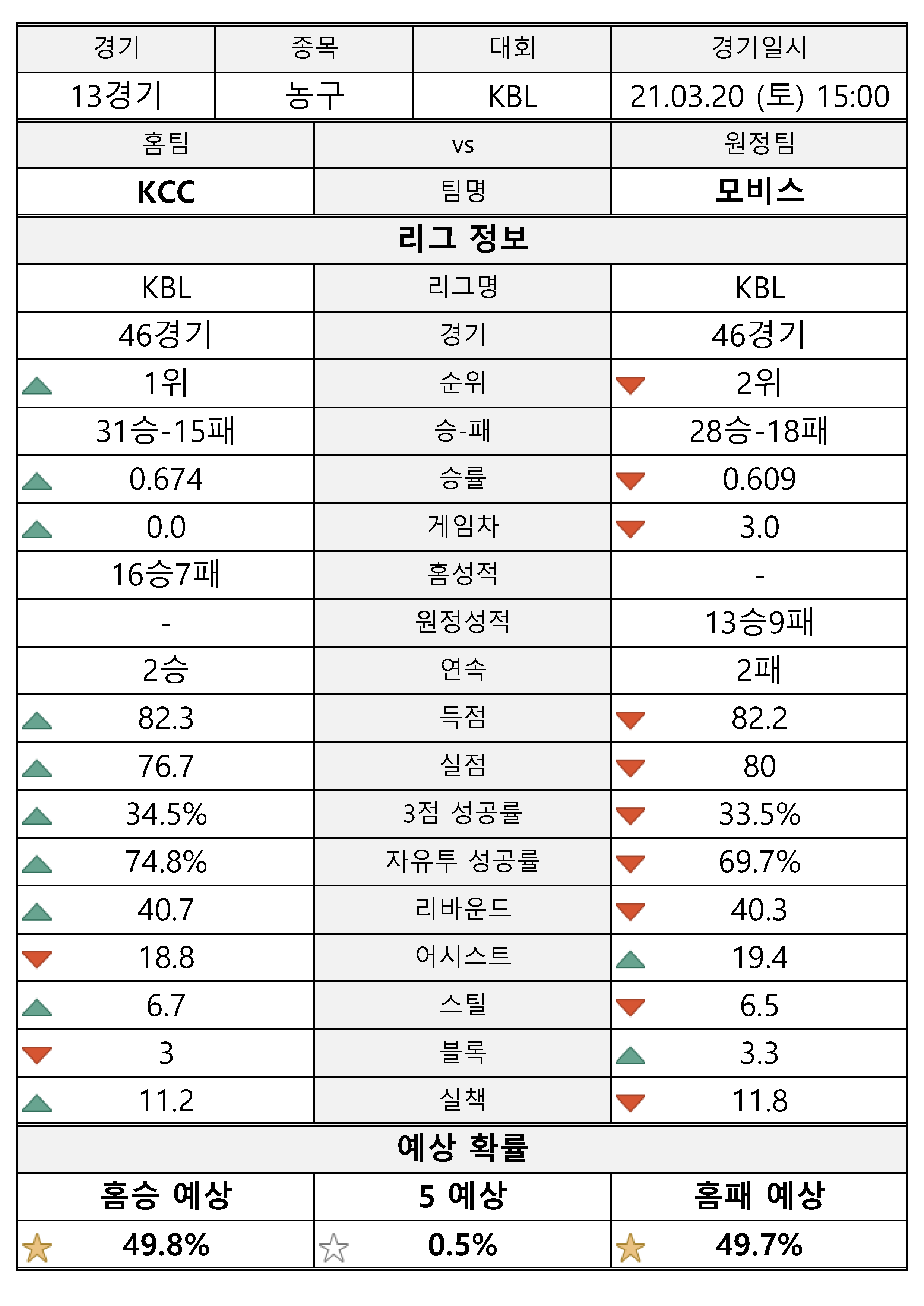 해당 팀에 대한 현재 성적을 확인해 보시고, 예측 결과도 참고하시기 바랍니다.