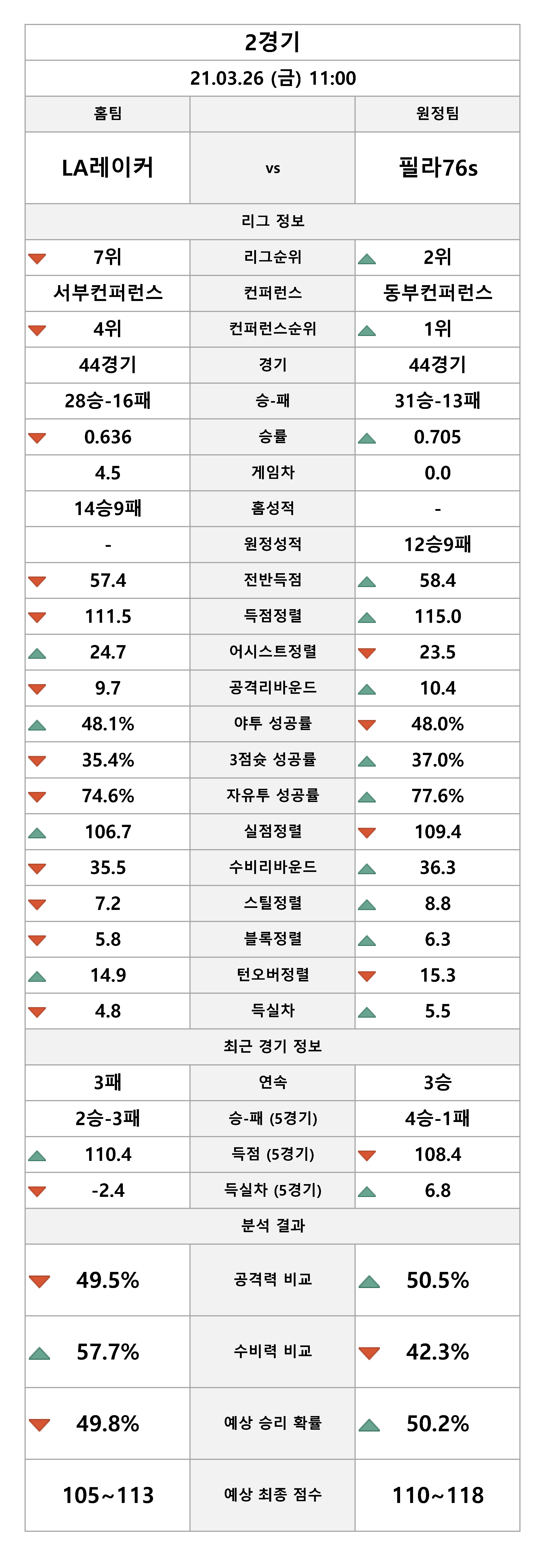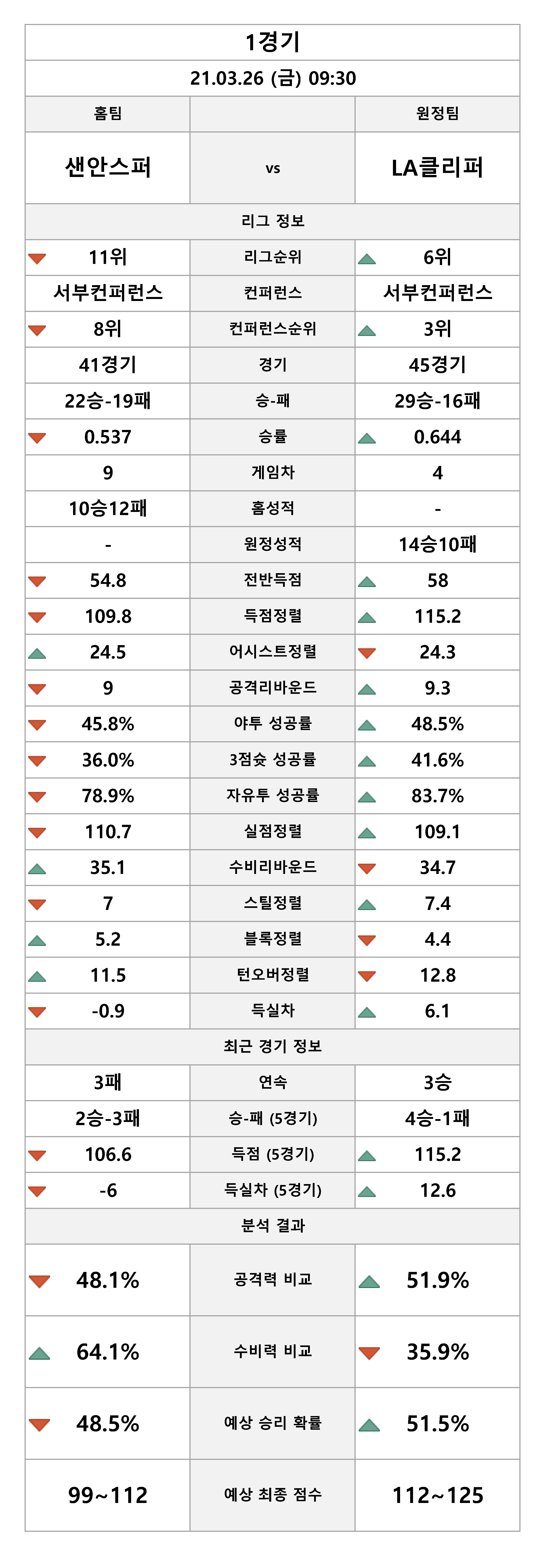 해당 팀에 대한 현재 성적을 확인해 보시고, 예측 결과도 참고하시기 바랍니다.