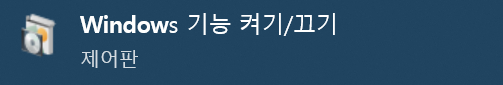 윈도우 키를 누르고 'Windows 기능 켜기/끄기'를 검색한 후 실행합니다.