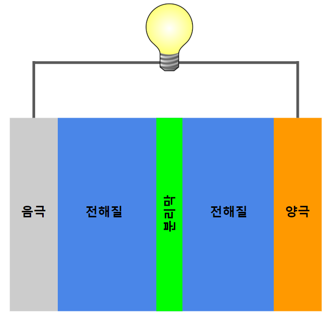 분리막은 이온만 움직일 수 있게 가로 막아주는 역할을 합니다.